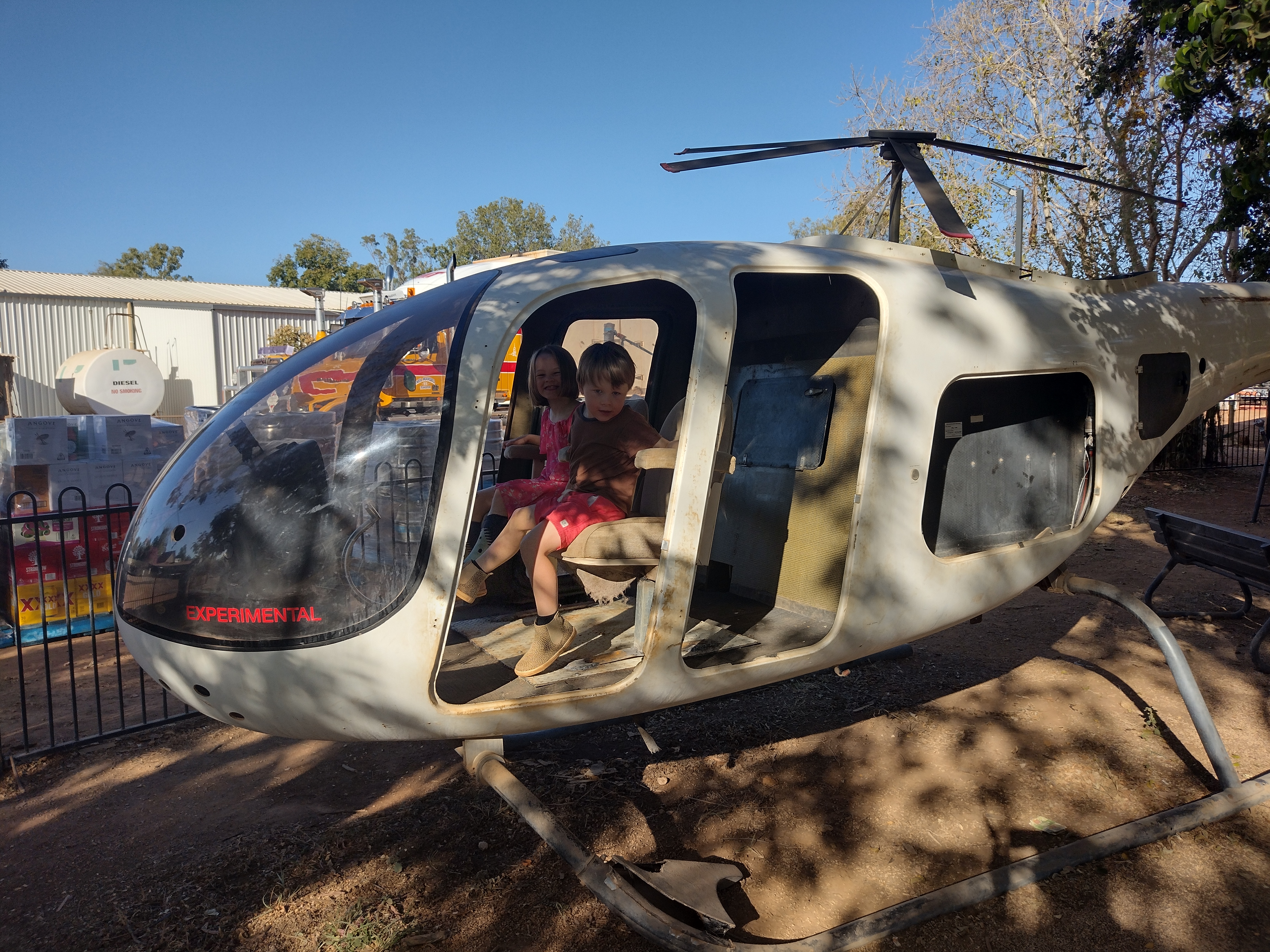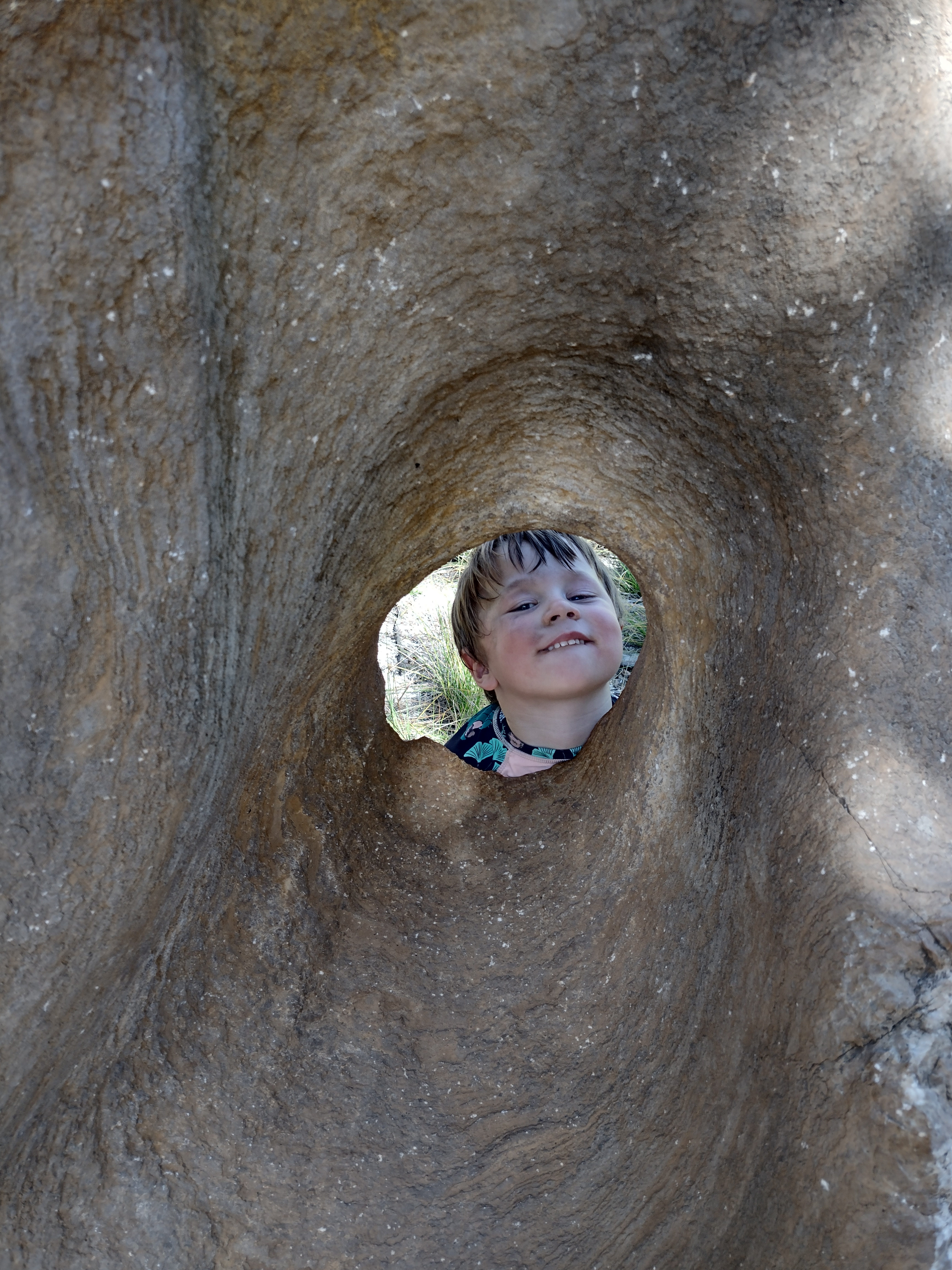 We woke to a relatively relaxed morning, given we didn’t have to pack up a tent. We had breakfast, then a quick play in the playground – the first we’ve been in since Melrose – before we left. The playground had an interesting collection of items – swings, a helicopter, a boat, and a rickety plastic wonderland that seemed to be held in place with star pickets and wire, and I’m pretty sure must have had a label somewhere on it saying ‘for display purposes only’! Anyway the kids survived, and we hit the road by 9.