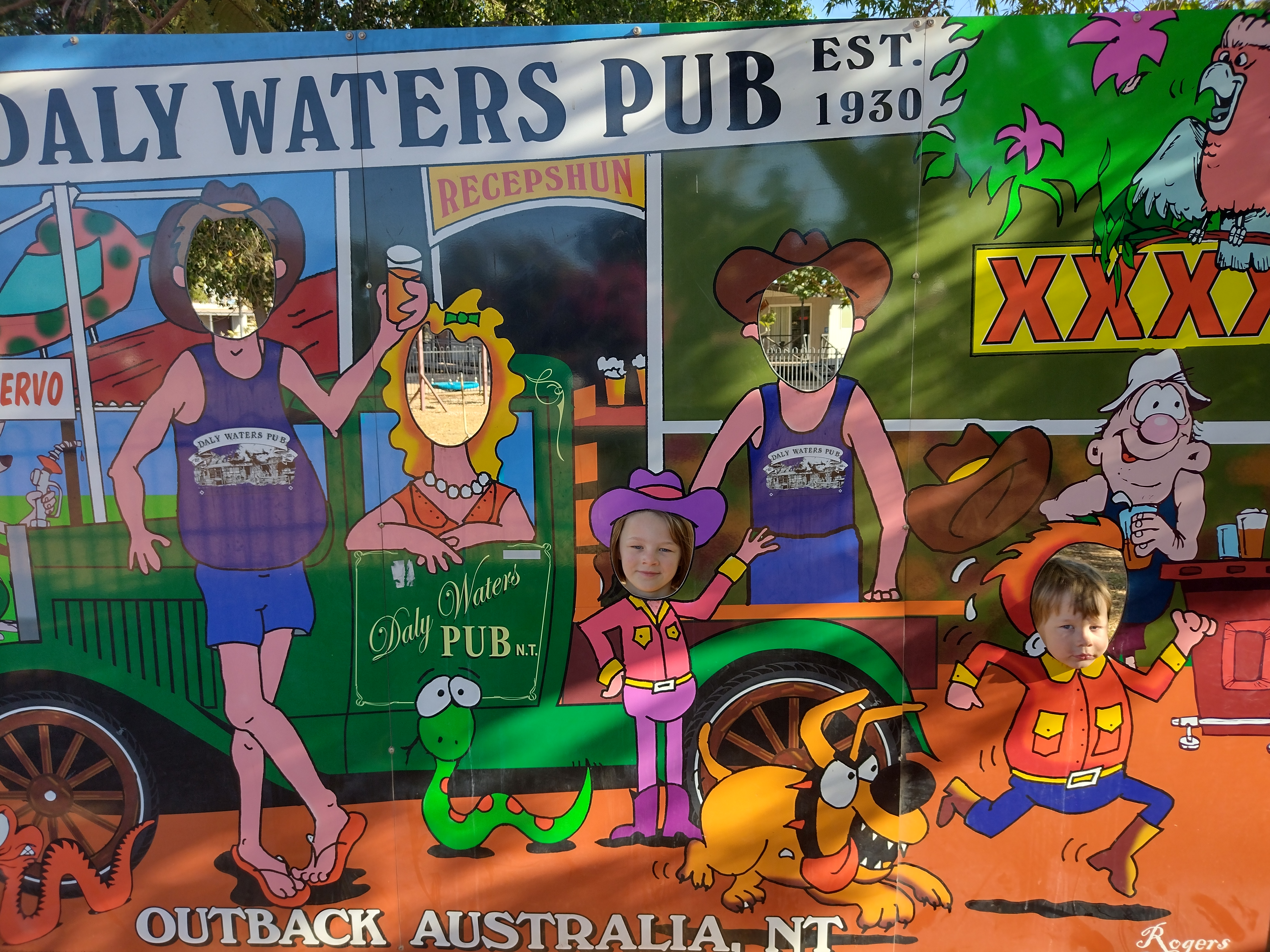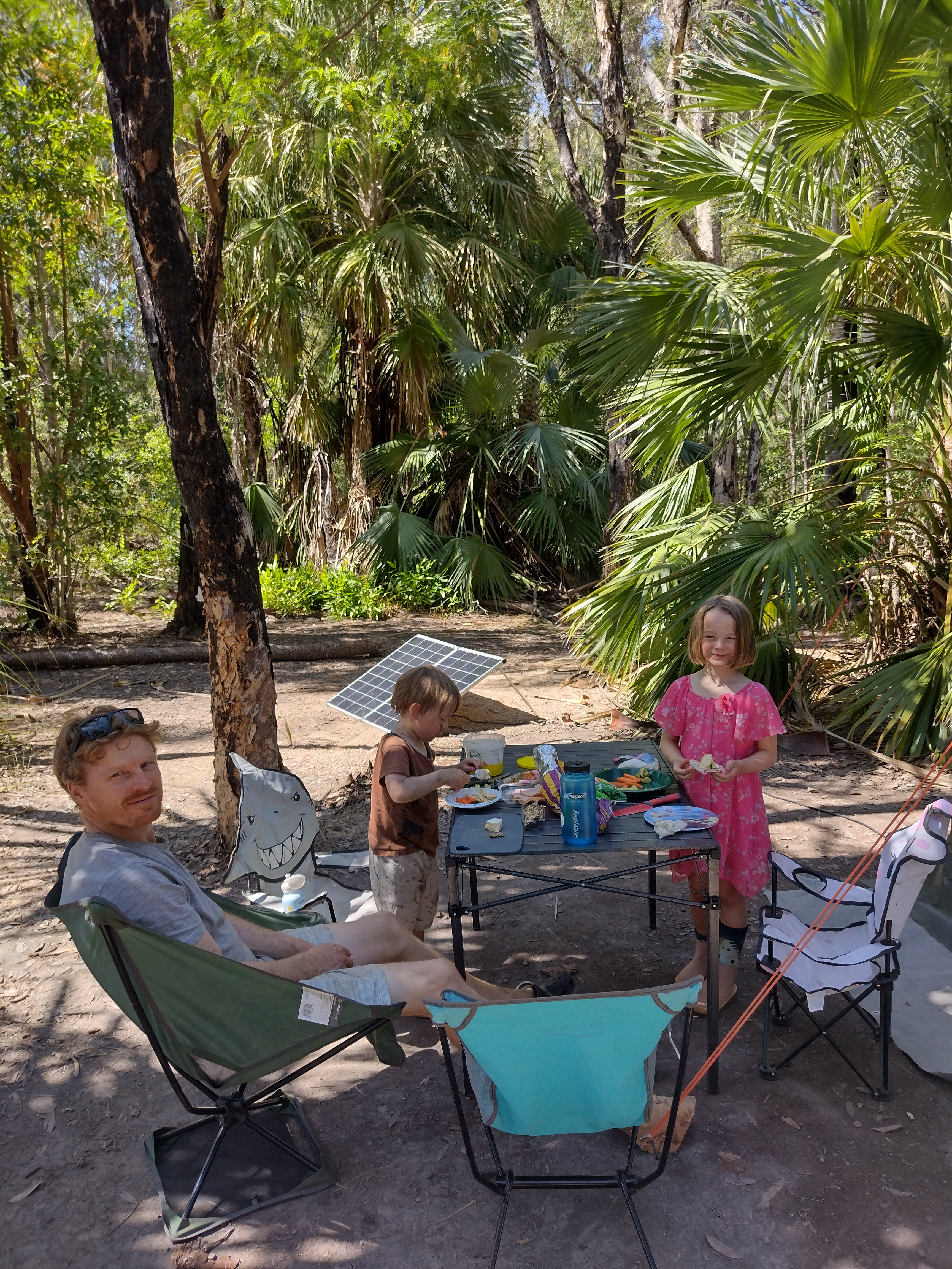 Bitter Springs was opened in 1999 to take pressure off Mataranka pools. It is a beautiful, natural site, lined with fan palms and pandanas, water lilies flowering around the edges. By the time we had made the walk there, the 34°C water did not feel the slightest bit refreshing. In fact, it was so busy there it felt a bit like climbing into people soup 🤢. It is an amazing place to visit though. There is a reasonable current so you can float along for maybe 200 m or so, then climb out and walk back to the start to do it again. If you went against the current from the start and along for a bit, it was much quieter, with most people either staying at the stairs or riding the current. Though swimming against the current is harder work! Both kids did fantastically. We brought a mask and snorkel for Bonnie and she loved exploring the underwater world. Otis loved swimming about with his life jacket on.