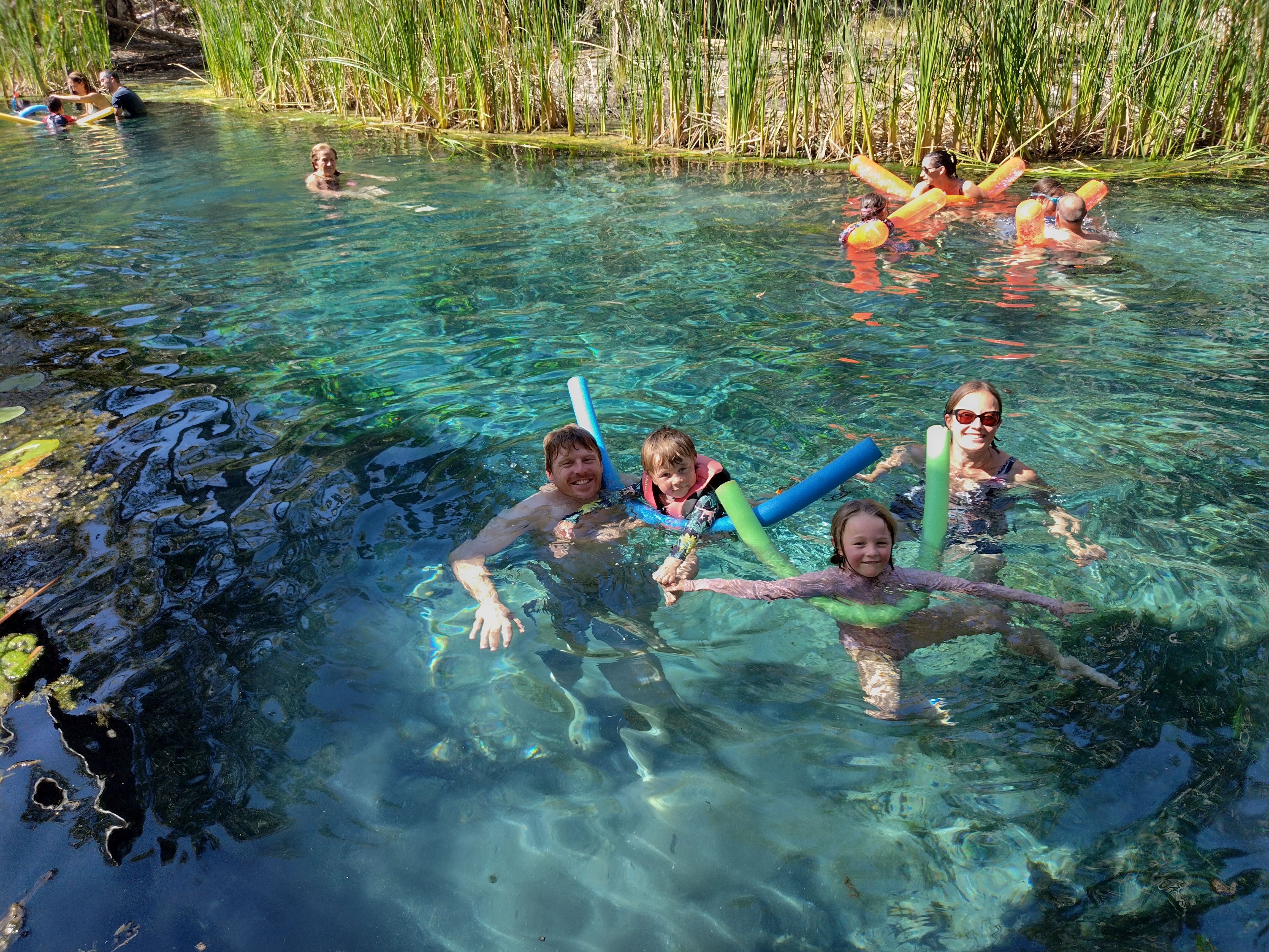 We set up, had lunch, and then prepared for a swim. Bitter Springs is 500m away so we could walk there from our camp site. As we headed off some neighbouring campers kindly lent us their pool noodles (when he called out to me “do your kids want some noodles”, I replied “why? Do you have leftovers?” 🤦😂). These were very much appreciated, even if they couldn’t be eaten!