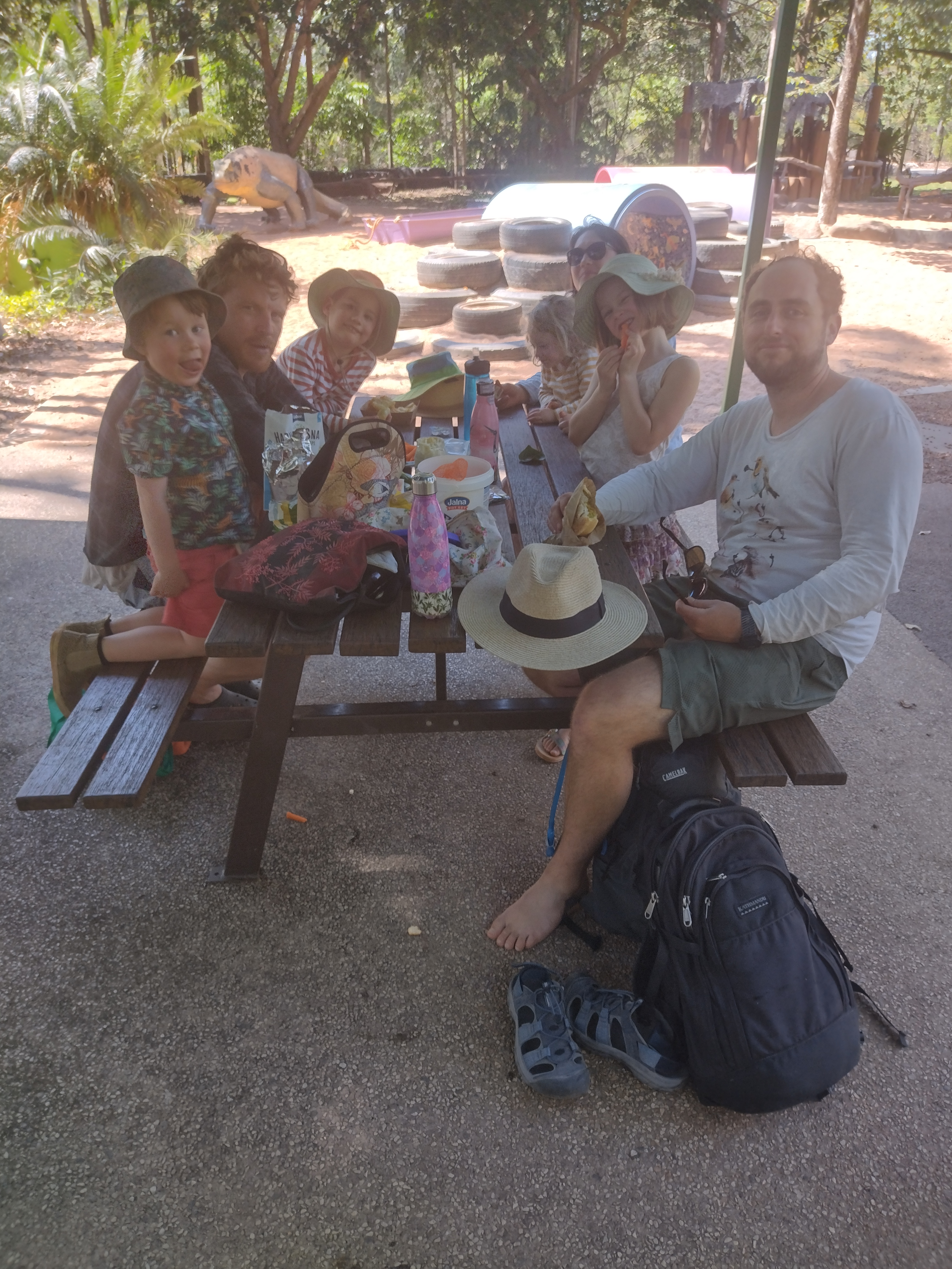 I woke early to an amazing dawn chorus, and whilst I probably should have jumped out of the tent and grabbed the binoculars for a walk, I didn’t ๐. I had spent a bit of time the night before checking over the plan for the next few days – Andrew has prepared a detailed schedule for the 2 weeks that they are here, and made all the appropriate bookings. Whilst I did read over it at the time, I was feeling a fair bit of overwhelm about planning the rest of our trip, and didn’t look into it in detail. Hence late on a Saturday night I realised a crucial detail – that our Walker Creek campground at Litchfield NP involved a 1.5km walk in. Whilst in different circumstances I wouldn’t even have blinked at doing that, we are getting around in an Oz tent, which is fantastic but folds down to something not much smaller than the structure itself, and ideally requires 2 people to carry it. Not something I want to hike into a camp with (though almost worth it to see the look on other hikers faces ๐), not forgetting mattresses, sleeping bags, food, cooking equipment and children. And it’s really hot! The campsite sounds absolutely amazing, and it absolutely pained me to cancel the first of our plans, but we decided to stay another night at the caravan park. If I had actually looked into it more closely at the time we could have packed a couple of hiking tents and been a bit more prepared, but it was not so!