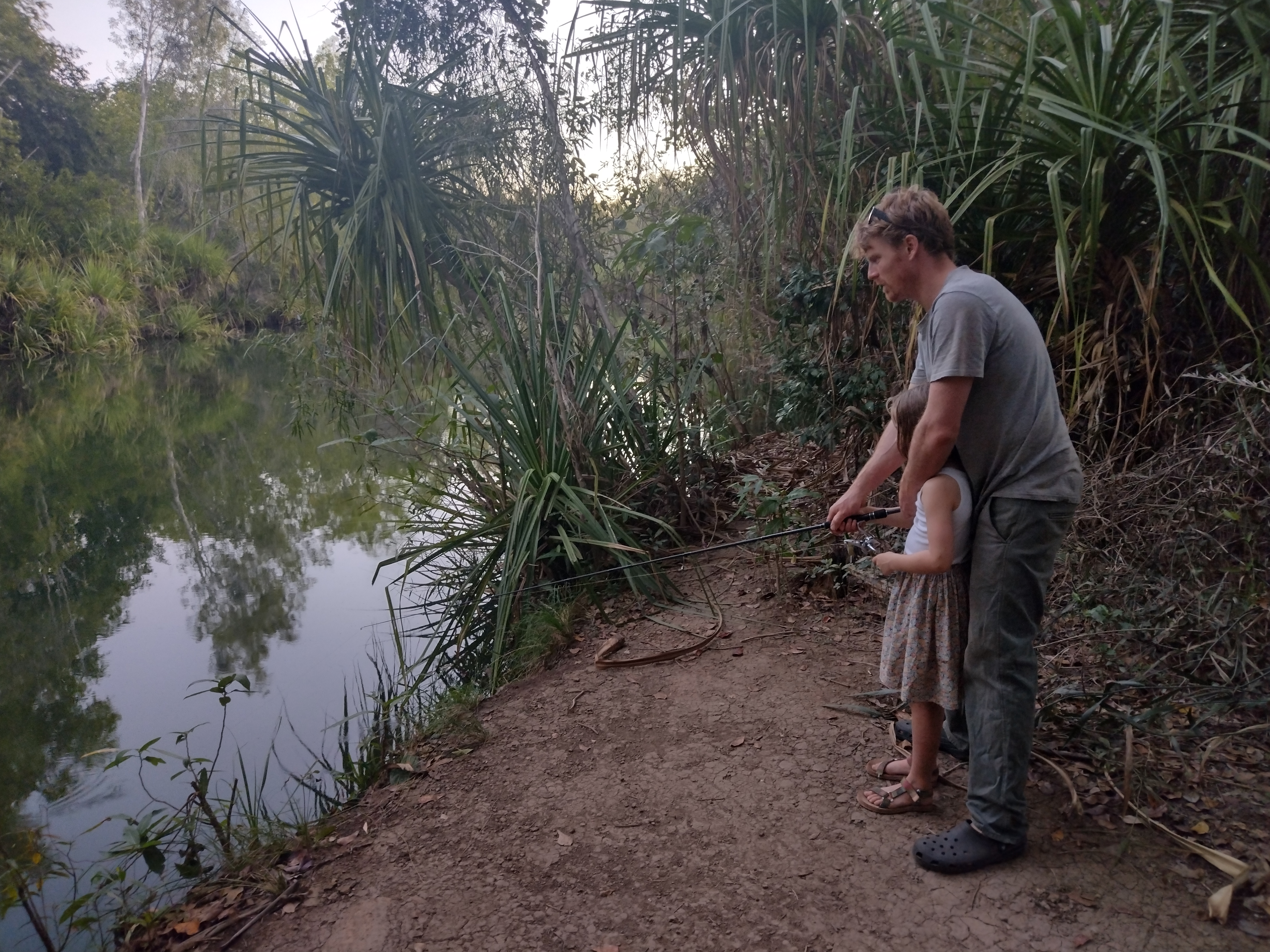 We arrived at the Douglas Daly Tourist Park just before 4. Andrew and Tegan had already selected a lovely site near the Douglas River – apparently Rufus saw a crocodile there when they first checked it out! Bonnie and I checked, but instead saw a rainbow bee eater, which was good enough for us!