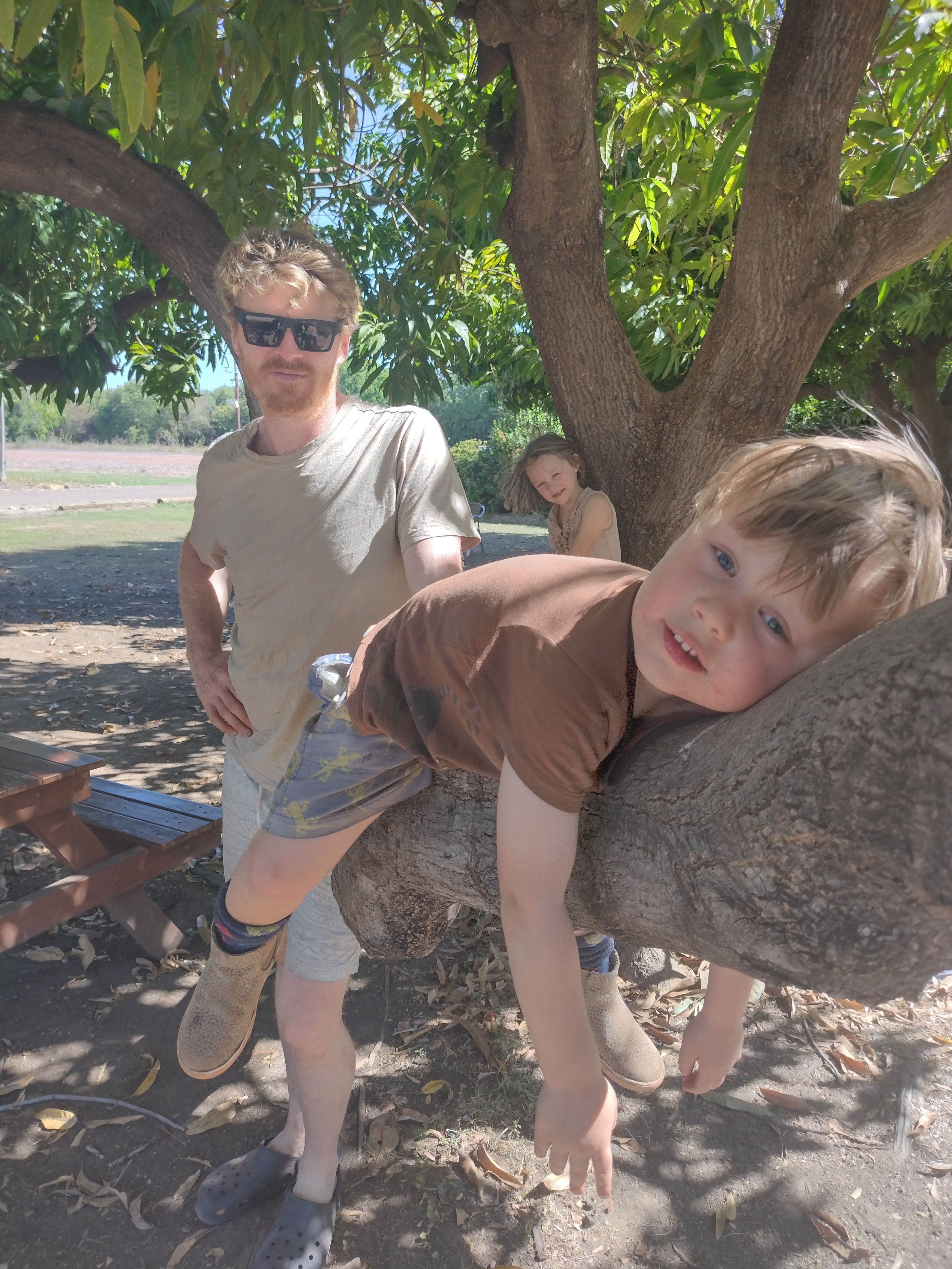 We drove to a cafe where we sat under big mango trees with a coffee. Bonnie got a sausage roll and Otis got a slice of chocolate cake…..a perfectly sound lunch in my books. ๐ Then we went to Coles, with the idea we stock up on fresh foods before going back to camping. This plan had a major fail though, as the fresh food section of Coles was mostly bare! I suppose we are just one of many travellers stopping at Kununurra to restock on fresh produce! We were able to get mandarins, kiwifruit and apples, potatoes and an iceberg lettuce at the bargain price of $3.50 (admittedly I don’t usually buy them, but I think they were going for $7 when we left Braidwood,๐)! We also bumped into our camper neighbour at the shops, just to further enhance Richie’s paranoia! ๐ We stopped in at a souvenir shop and bought the kids t-shirts before we headed off to the park.
