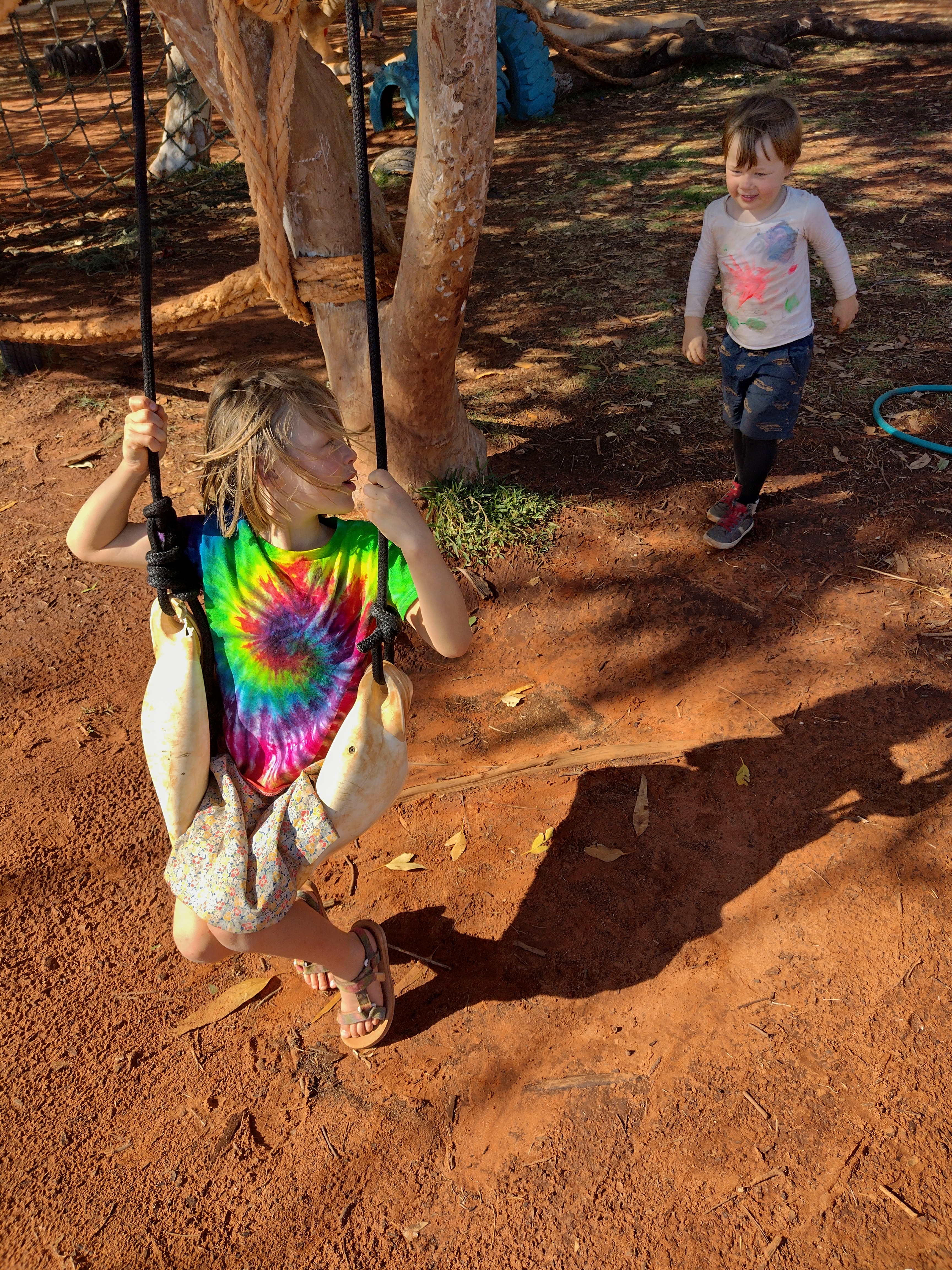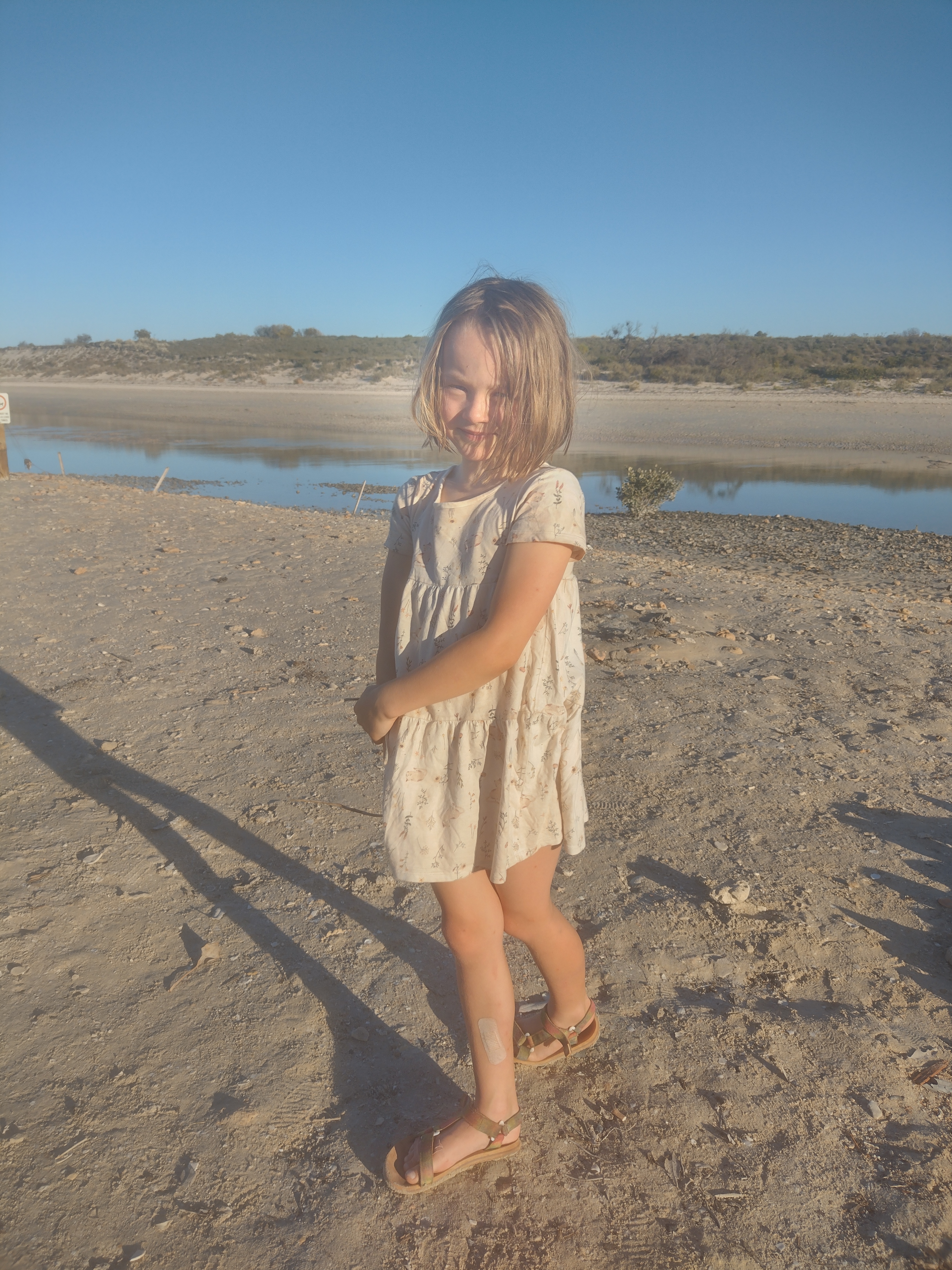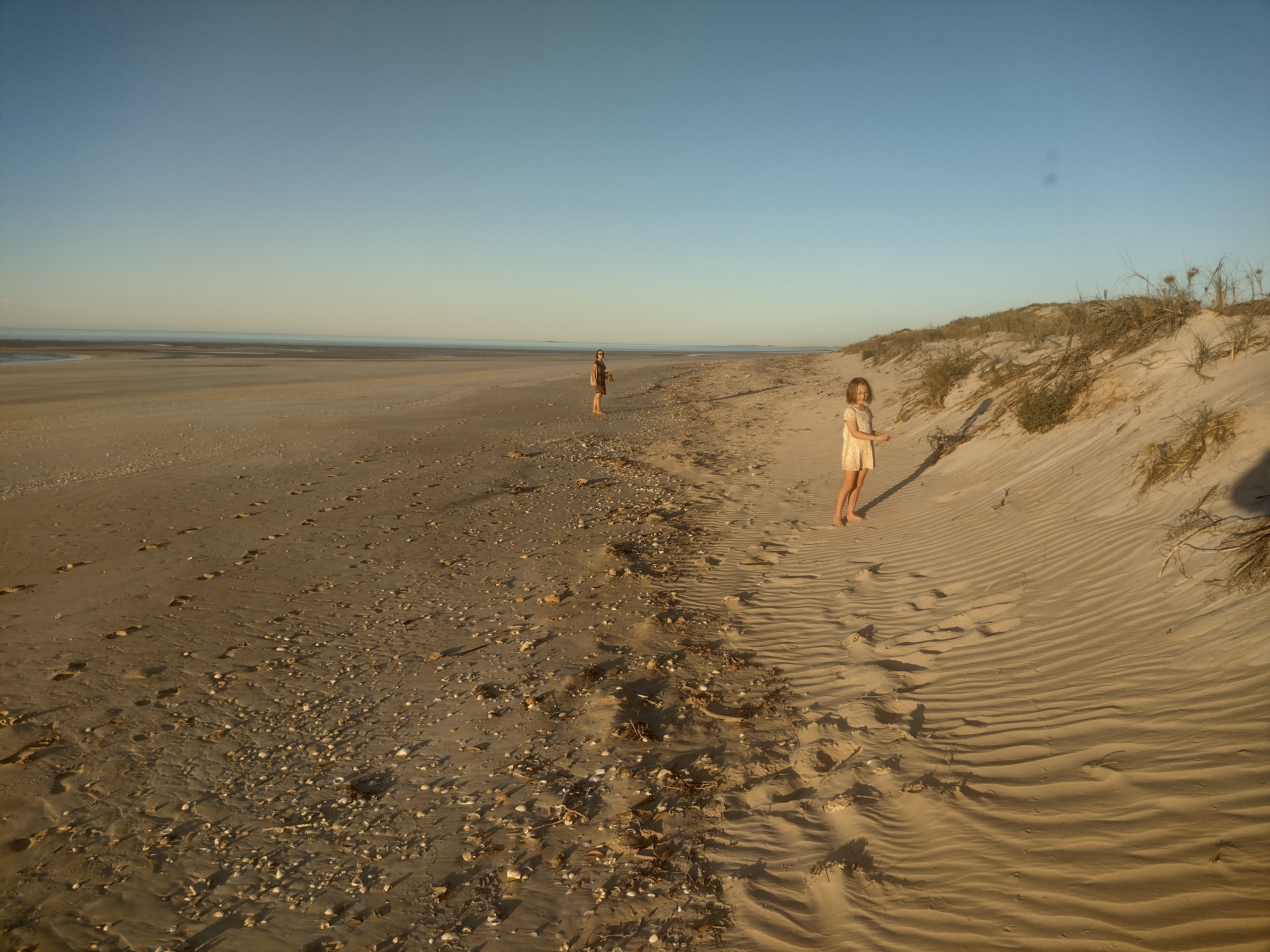 We made the long straight drive southwards, perpendicular to 80 mile beach. We stopped at the Spitfire Roadhouse for a quick break, and found amazing home made sausage rolls and gluten free hot chips – a rare find, to be gluten free they need to be cooked in a dedicated fryer that doesn’t cook anything crumbed or battered (or Chiko rolls 🤢). So Richie got to enjoy some rare chips, and the kids made their best attempts on some very solid sausage rolls (which means I got more than my fair share 😁).