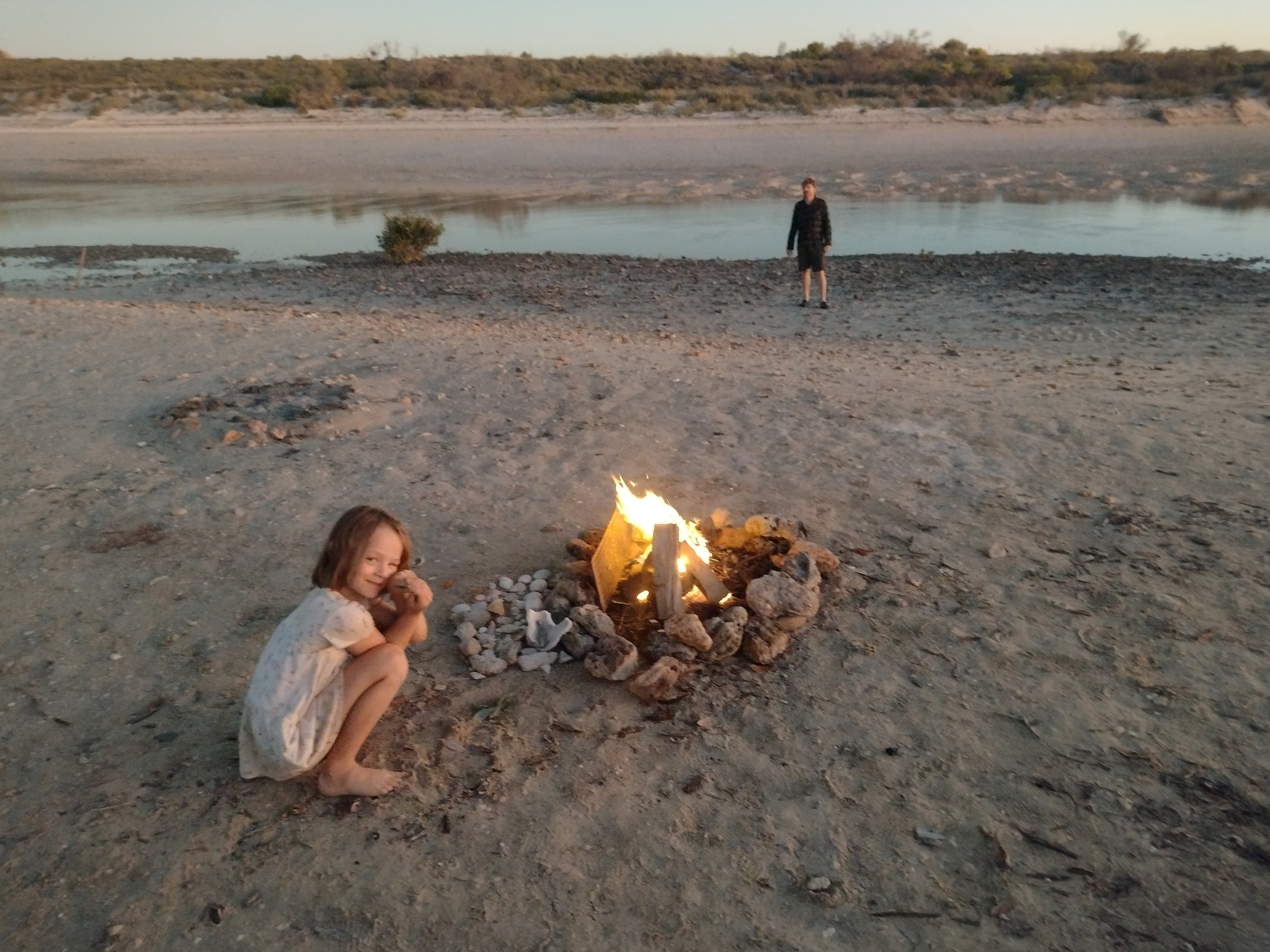 Richie got a fire going back at the campsite and we enjoyed a wine in the last light. We had steak and shark for dinner – surf and turf! Incredibly indulgent but we really need to clear a space in the freezer in case we get more fish! The kids star-gazed for a while before bed. It is noticeably cooler here, which I feel a little sad about. I’m not ready to give up warm nights yet (though Richie definitely is!). It reminds me we are going back towards winter!